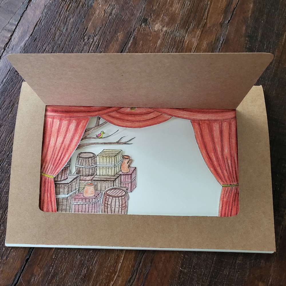 Das Theaterbuch ist eine Idee der Designerin und Illustratorin Karishma Chugani. Ich war so verzaubert von ihren Projekten, dass ich einen Kurs von Ihr auf domestika gekauft habe und dort auf diese Art des Storytellings gestoßen bin. Ich setzte gerade eine Kurzgeschichte von mir damit um. Schau mal hier auf ihrer Seite, da kannst du sehen, wie das am Ende aussieht: